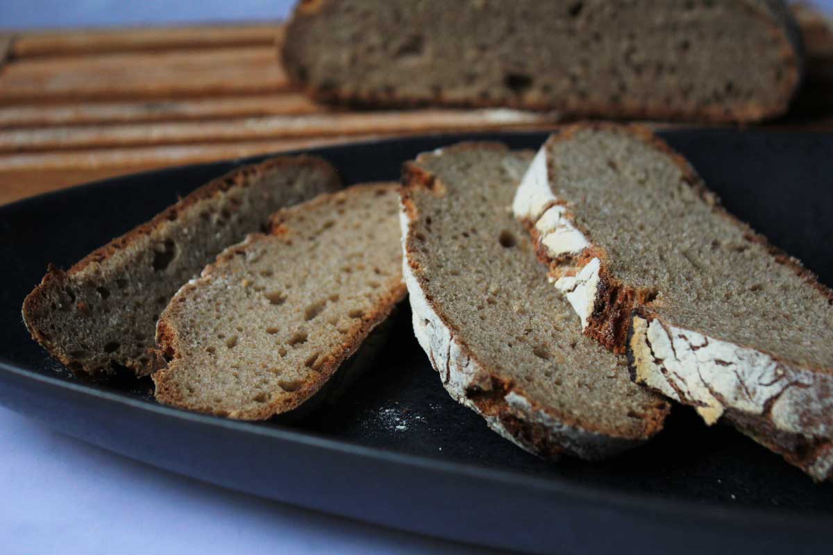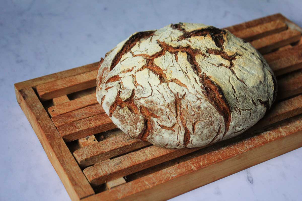 The rye bread brings back the old-fashioned taste of years gone by. This loaf is quite different from the others. Its texture is particularly dense. Its flavour is distinctively strong. It is also higher in fibre than bread baked with only wheat flour.