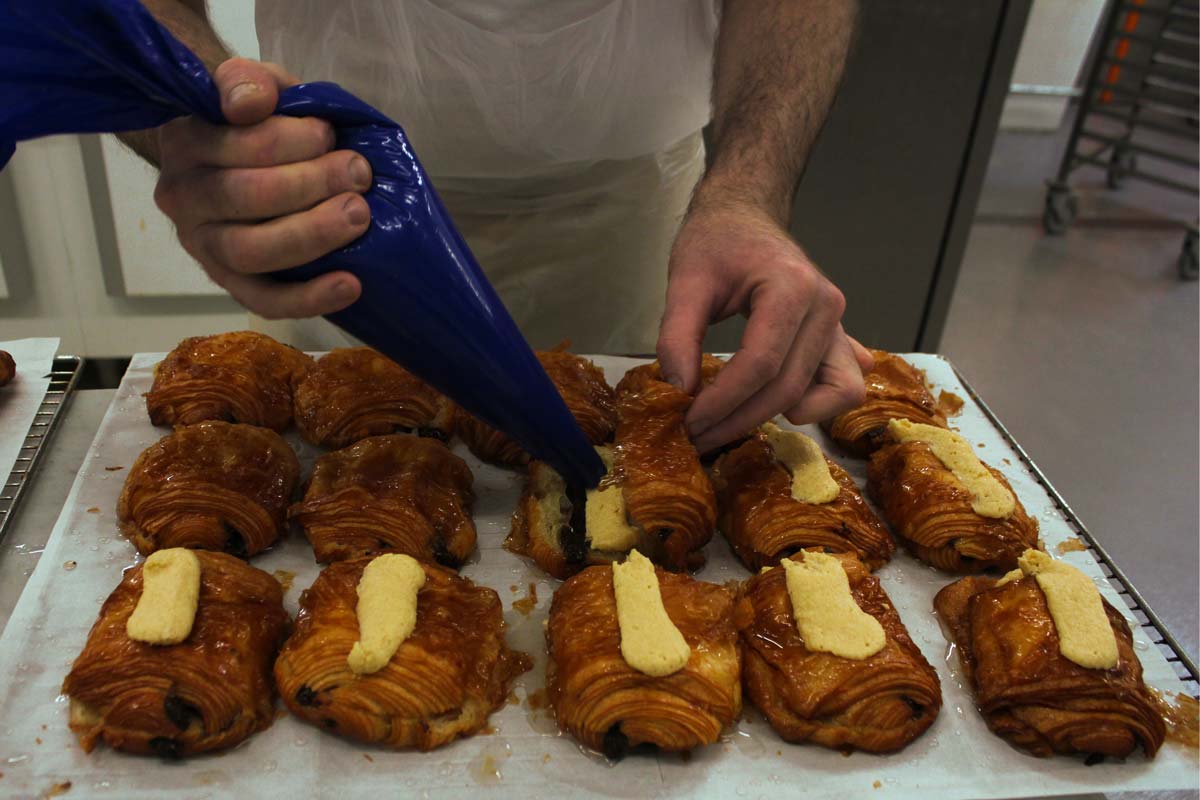 The pain au chocolat already makes the difference thanks to the premium 55% dark chocolate from Valrhona and the La Boulangerie Robuchon’s savoir-faire. This almond pain au chocolat will just blow you away. It’s first dipped in sugar syrup for the crispy side, and it’s covered with slivered almonds and icing sugar. But the best is obviously the homemade almond cream (or frangipane), made with love for you. It will definitely thrill your taste buds!