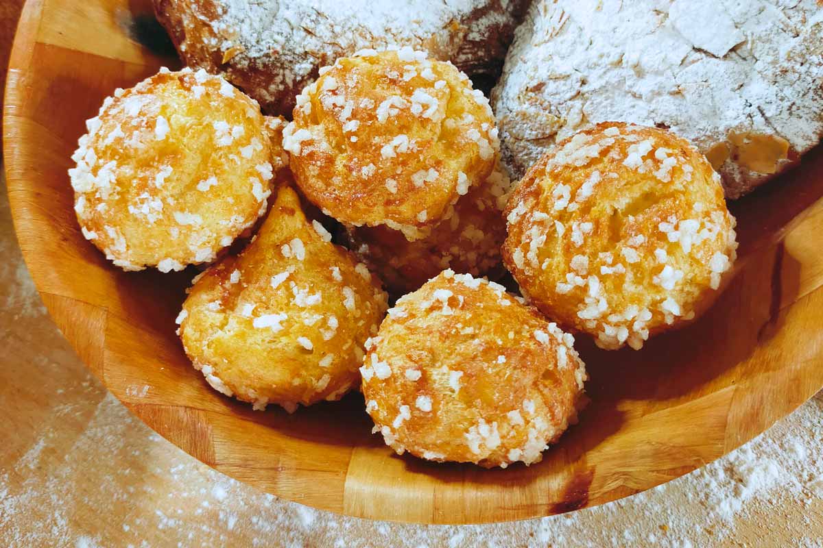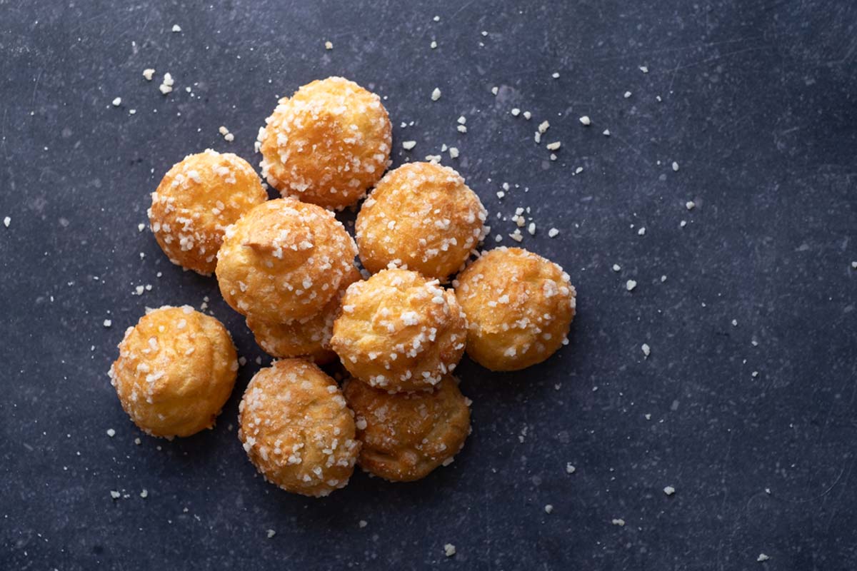 Chouquettes are baked choux pastry balls covered with sugar pearls. The dough, similar to most sweet French pastry, is made with flour, butter and eggs and is a staple in any traditional boulangerie. It is hard to stop once you've had one, whether you’re a kid or a grown up!