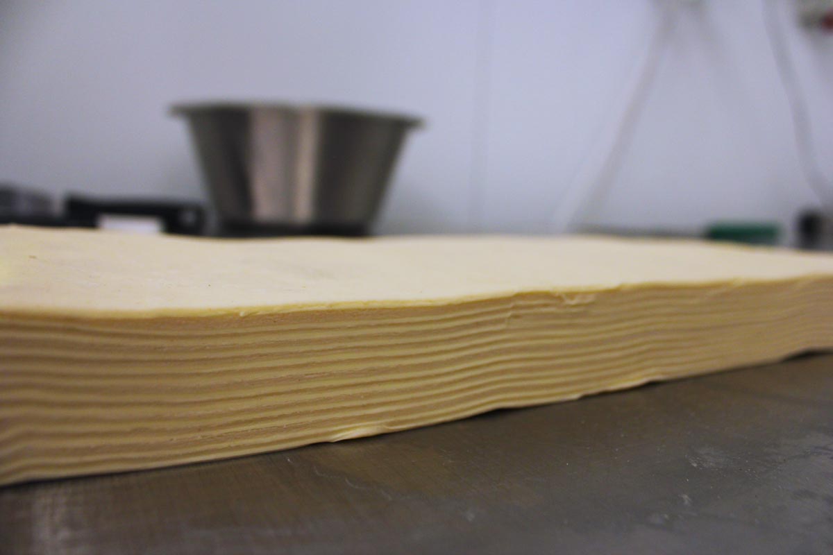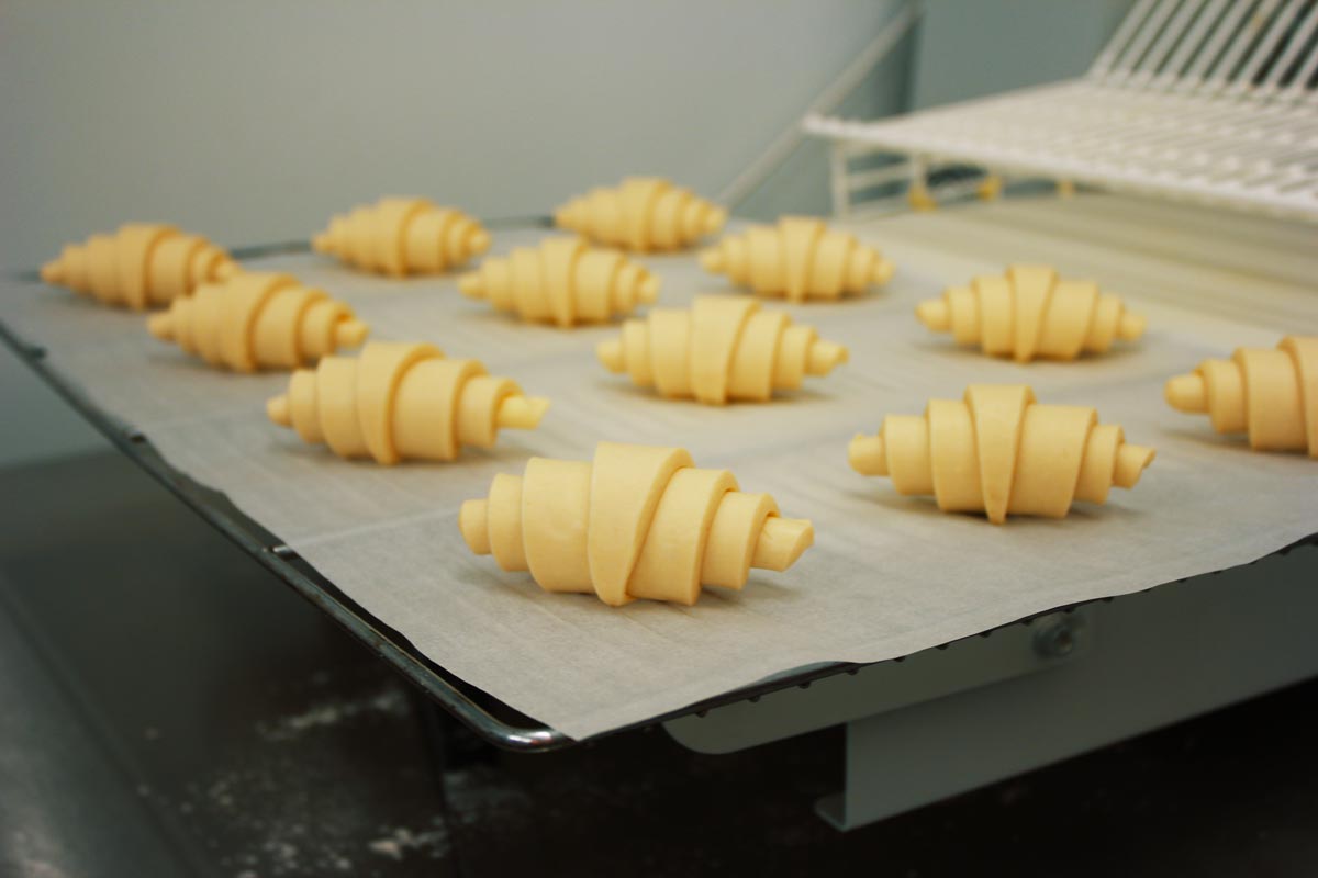 The croissant dough is made with a layer of butter between two layers of dough which have to be flattened. The key to success: the dough has to be cold, at 0°C, and the butter at 15°C. Otherwise, they will mix when flattened, and will transform into a brioche. We tell you, it’s a real art!